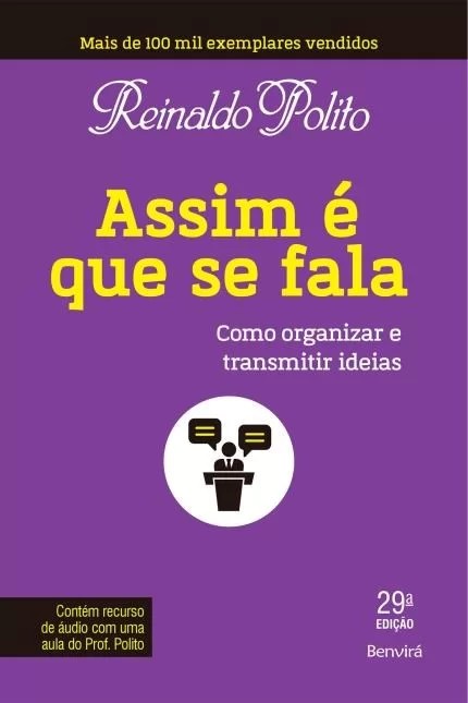 Reinaldo Polito, o maior especialista brasileiro em expressão verbal, reúne nessa obra orientações práticas para ajudá-lo a preparar qualquer tipo de apresentação, escrita ou falada. Você se tornará apto a conduzir reuniões de negócios, ministrar aulas e palestras, elaborar relatórios e matérias jornalísticas, escrever um livro ou uma tese, apresentar um projeto escolar, enfim, aprenderá a organizar seu raciocínio de modo a satisfazer a expectativa de seu público e prender a atenção dele. Já na 29 edição e com mais de 100 mil exemplares vendidos, assim é que se fala conta ainda com uma série de exercícios de fixação, bem como com um áudio em que o próprio autor ministra uma aula sobre o assunto. Trata-se de um verdadeiro curso de comunicação verbal, essencial para profissionais e estudantes das mais diversas áreas.