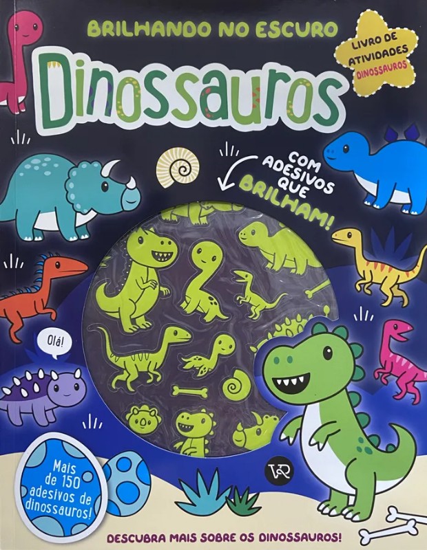 Atenção especialistas em dinossauros de todo lugar! n nNeste livro, você vai descobrir muito sobre os dinossauros. São 150 adesivos coloridos, 30 adesivos que BRILHAM NO ESCURO e um monte de atividades sobre eles!
