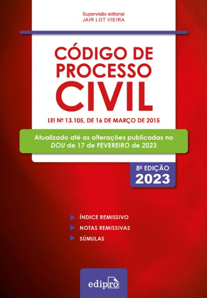 SUPERLANÇAMENTO: Código de Processo Civil Lei n 13.105, de 16 de março de 2015 Atualizado até a Lei n 14.365, de 2 de junho de 2022, e até o DOU de 17 de fevereiro de 2023 Lei de Introdução às Normas do Direito Brasileiro e Regulamento Resoluções do TST e Resoluções do CNJ Enunciados do FPPC, da ENFAM, do CJF e do STJ Súmulas e Súmulas Vinculantes do STF Temas com Repercussão Geral do STF Súmulas do STJ Índice remissivo Notas remissivas.