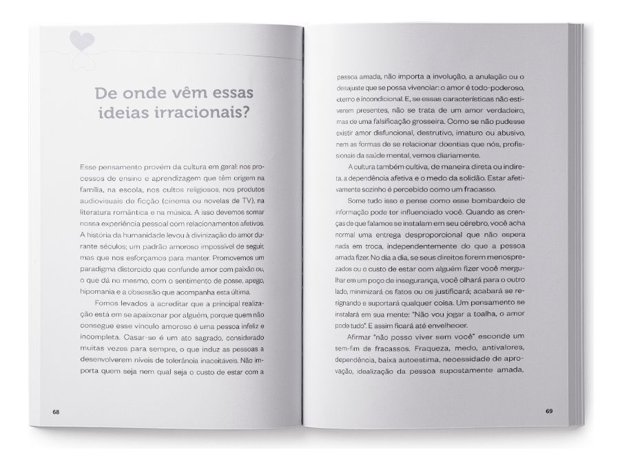 A PESSOA QUE ESTÁ DO SEU LADO É REALMENTE A CERTA PARA VOCÊ? – WALTER RISO, ESPECIALISTA EM RELACIONAMENTOS, VAI TE AJUDAR A DESCOBRIR Alguma vez na sua vida, de tanto oferecer amor a alguém, você se esqueceu de si, de seus sonhos, suas ilusões, sua vocação, seus valores e seus sentimentos mais profundos? Este livro pode ser exatamente o que está precisando agora. Estamos acostumados a entregar maneira excessiva e a receber muito pouco ou nada de volta da pessoa que amamos. Pior, normalizamos essa ideia, nos resignando a uma relação desequilibrada pela crença de que o verdadeiro amor não espera nada em troca. Para Walter Riso, isso não deve ser assim. Um amor um amor saudável está sempre em movimento, formando uma equação em que um sente e enxerga o afeto do outro, e vice-versa. Talvez, depois de ler De tanto te amar, me esqueci de mim, sua visão sobre o amor nunca mais volte a ser mesma. Principalmente, aprenderá que o amor que faz bem exige um princípio fundamental: eu preciso me amar para amar você.