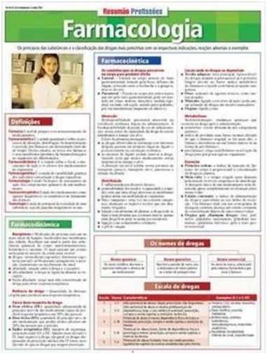 Os princípios das substâncias e a classificação das drogas mais prescritas. Definições mais utilizadas na ciência da farmácia. Farmacodinâmica e farmacocinética, os nomes e as escalas de drogas.Uma grande lista com a classificação dos principais fármacos, suas indicações e reações adversas. No final, um quadro sobre os conceitos técnicos da legislação brasileira a respeito dos medicamentos.RESUMAO PROFISSOES - FARMACOLOGIARESUMAO PROFISSOES - FARMACOLOGIA