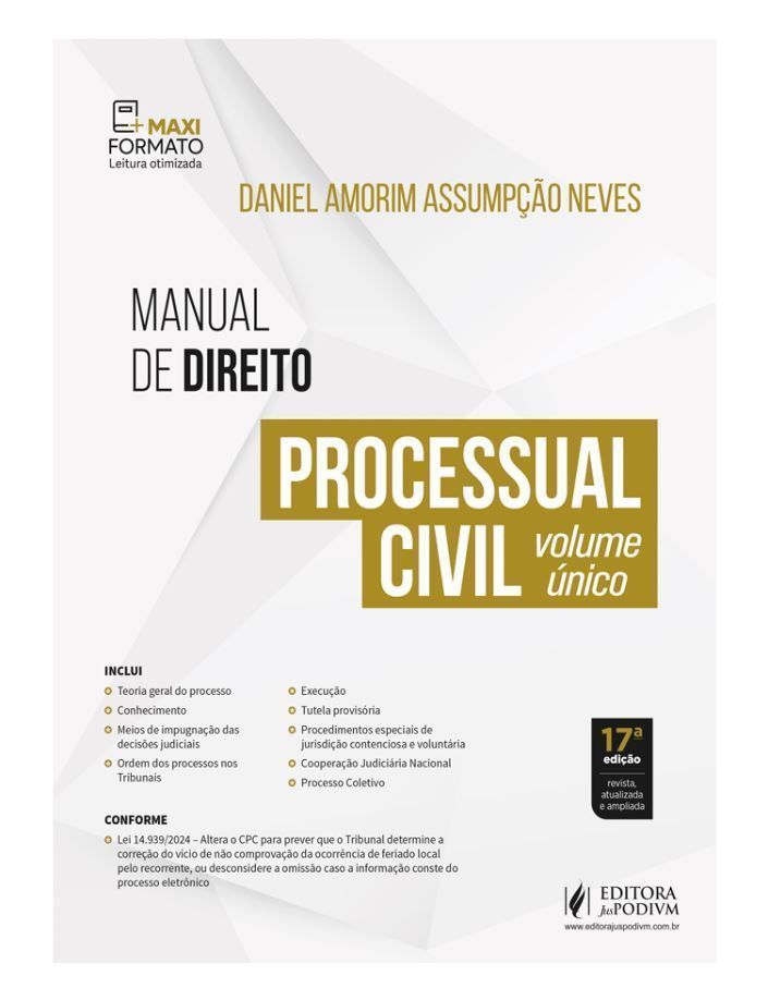 Nesta 17ª edição, além das atualizações jurisprudenciais de praxe e de alterações pontuais de conteúdo, que também costumam ocorrer, o que mudou de mais significativo com relação à edição passada foram os capítulos referentes à Teoria Geral dos Recursos. A razão desta mudança foi o lançamento, no segundo semestre de 2023, do meu mais recente livro, Teoria Geral dos Recursos. Fruto de uma extensa pesquisa jurisprudencial e doutrinária, a obra me lançou a um grande desafio: reescrever os capítulos referentes ao tema no Manual de Direito Processual Civil sem perder a característica de um manual, ou seja, mantendo a objetividade e sem aumentar o tamanho do livro. Confesso que não foi uma tarefa fácil, mas acredito que o trabalho tenha ficado bom. Os capítulos foram praticamente reescritos, estando absolutamente atualizados. Reflexamente também houve mudanças em alguns recursos em espécie, ainda que nesses de maneira menos significativa. Espero que o resultado agrade aos leitores.