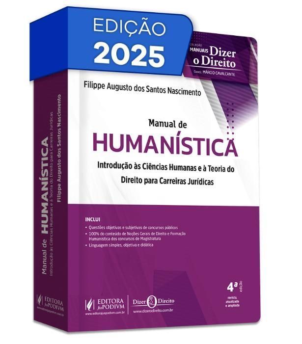 É com profunda gratidão e um senso renovado de responsabilidade que apresento esta quarta edição do Manual de Humanística. Esta jornada, que começou com a desafiadora intenção de tornar acessível o pensamento de grandes mestres de complexas áreas do pensamento, hoje se fortalece e se expande graças ao apoio e à confiança de cada um dos leitores e das leitoras. Desde a primeira edição, um caminho marcado por constante aprendizado e evolução foi percorrido. A interação com leitores tem sido uma das experiências mais gratificantes deste projeto, pois foram suas sugestões, críticas construtivas e elogios que guiaram o aperfeiçoamento deste livro. A cada nova edição, dedico-me a este desafio como quem cuida de um ser vivo, que responde ao tempo e à realidade em constante transformação. Na preparação desta quarta edição, procurei manter o foco em uma atualização rigorosa da obra. Este compromisso reflete minha busca em proporcionar uma experiência cada vez mais completa para estudantes, concurseiros e de uma nascente geração de apaixonados por Humanística, reforçando a visão de que o conhecimento teórico tem um papel fundamental em nossa prática cotidiana e profissional. Que esta nova edição continue sendo uma parceira para quem busca compreender a essência da Humanística, que, em última análise, é o estudo da própria condição humana e como sua compreensão leva a uma melhor aplicação do Direito pelos profissionais desta área. A cada um de vocês, meu sincero agradecimento por fazerem parte deste projeto de construção e aprimoramento. - Filippe Augusto dos Santos Nascimento