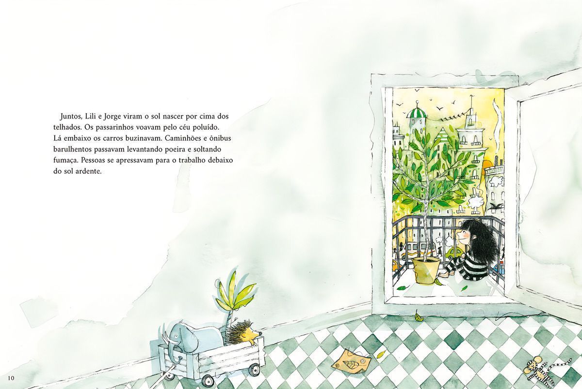 Lili quer ganhar uma árvore de estimação de aniversário. Ela promete ao pai que vai cuidar bem dela, com muito sol e água fresca. Mas a menina não imagina as transformações que a chegada da árvore vai gerar na vizinhança… Jorge é a nova árvore de estimação de Lili. Com ele em um carrinho de mão, os dois saem para explorar a cidade, conversando e interagindo com os vizinhos e os animais, que param para descansar sob sua sombra — afinal, Jorge é a única árvore da rua. Logo, os amigos de Lili também querem suas próprias árvores. Juntos, dia após dia, eles começam a criar uma pequena floresta ambulante, que passa a viajar por toda a cidade e a transformar as ruas cinzentas em um desfile colorido. A notícia se espalha e mais pessoas se juntam, trazendo plantas, flores e vida entre os prédios. Inspirada pelo projeto Bosk, em que mil árvores foram plantadas em caixas de madeira para transitar pelas ruas de uma cidade holandesa, a premiada Marie-Louise Gay combina pinturas, desenhos e colagens para criar uma mensagem tocante. Minha árvore de estimação nos lembra que basta coragem e um pequeno gesto para mudar o mundo, uma árvore de cada vez. Indicado para leitores a partir de 4 anos.