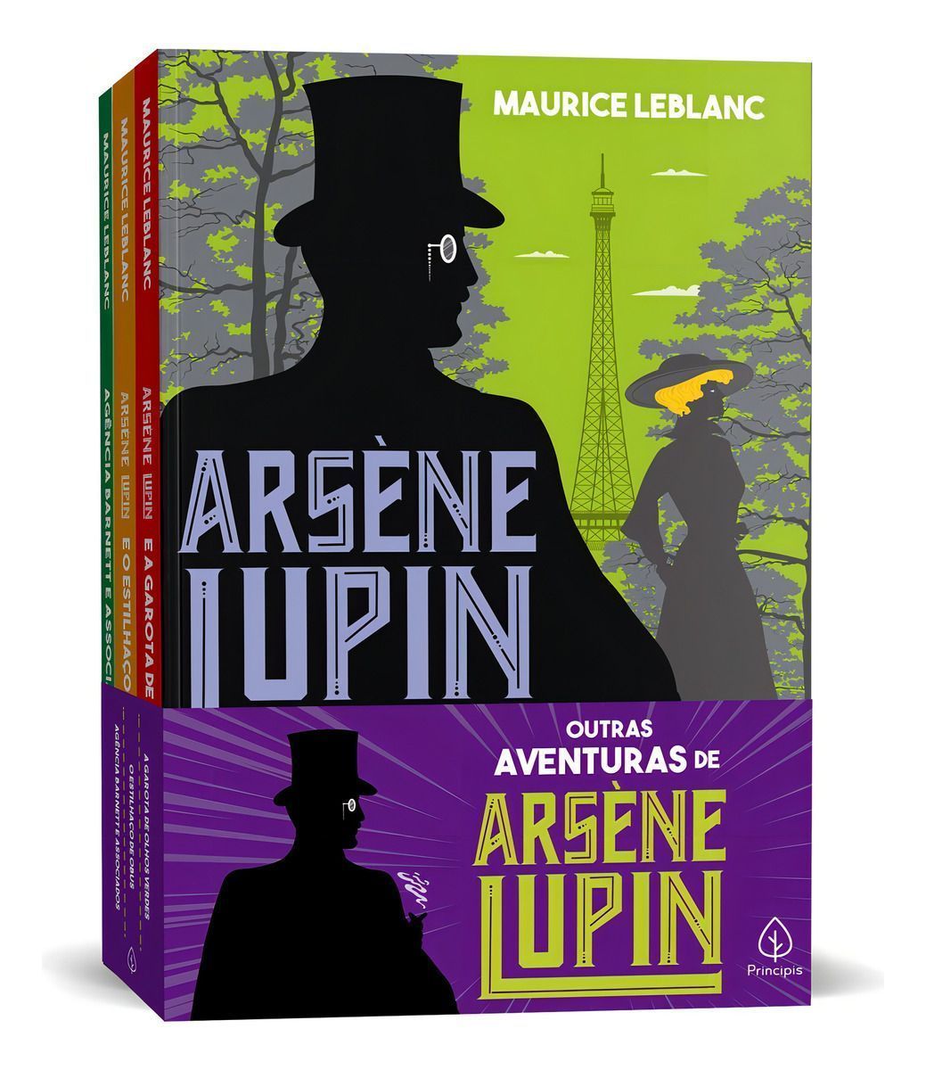 Arsène Lupin, que conseguiu ser mais famoso que seu criador, nasceu por encomenda do editor Pierre Lafitte ao escritor Maurice Leblanc. Este kit reúne as aventuras do maior ladrão do mundo com os títulos: 'Arsène Lupin e a garota de olhos verdes', 'Arsène Lupin e o estilhaço de Obus' e 'Agência Barnett e associados'.