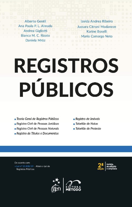 A obra Registros Públicos é fruto de um grande trabalho conjunto de diversos especialistas no extrajudicial! Trata-se de um livro único pensado e construído com o objetivo de concentrar todas as especialidades de maneira completa e prática, esquematizando o estudo e facilitando a compreensão dos temas mais complexos dos registros públicos.Toda matéria trazida no livro é abordada de maneira agradável e extremamente atualizada em atenção as mais recentes alterações legislativas, decisões judiciais (Supremo Tribunal Federal, Superior Tribunal de Justiça e pelos Tribunais de Justiça) e administrativas (Corregedoria Geral da Justiça, Conselho Superior da Magistratura e Conselho Nacional de Justiça), em conformidade com os mais diversos atos e diplomas normativos Conselho Nacional de Justiça e das Corregedorias Gerais (resoluções,provimentos, portarias e Código Normas).