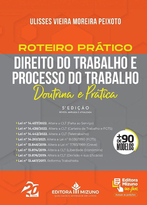 Conceito, Fontes e Princípios do Direito do Trabalho; Contrato Individual de Trabalho; Representação dos Empregados; Empregado; Empregador; Remuneração; Equiparação Salarial; Aviso Prévio; Fundo de Garantia do Tempo de Serviço (FGTS); Identificação Profissional; Salário Mínimo; Férias; Teletrabalho; Dano Extrapatrimonial; Estabilidade; Proteção do Trabalho da Mulher; Greve; Organização Sindical; Convenções Coletivas de Trabalho; Imposição de Multas e Justiça do Trabalho. A segunda parte da obra carrega temas relacionados ao Processo do Trabalho, tais como: Processo em Geral; Dissídios Individuais; Procedimento Sumaríssimo; Inquérito para Apuração de Falta Grave; Incidente de Desconsideração da Personalidade Jurídica; Processo de Jurisdição Voluntária para Homologação de Acordo Extrajudicial; Dissídios Coletivos; Processo de Execução; Recursos; Procedimento Sumaríssimo no Processo Trabalhista e Direito Internacional