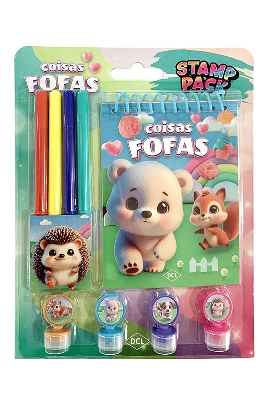 Pensado para estimular a criatividade e o aprendizado das crianças, o Kit Stamp Pack é uma ferramenta excelente para estimular a criatividade. Composto por um livro para colorir, com os personagens mais queridos pelas crianças, quatro carimbos e canetinhas, o conjunto proporciona uma experiência de aprendizagem interativa completa. As crianças têm a oportunidade de ler e colorir o livro, além de usar os carimbos e as canetinhas para criar suas próprias ilustrações. Esse processo não só aprimora a coordenação motora fina, mas também proporciona momentos de diversão e aprendizado, fortalecendo o vínculo das crianças com a leitura e a expressão artística.