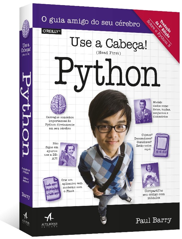 (Sobre o Python 3) O que você aprenderá com este livro? Deseja aprender a linguagem Python sem percorrer um longo caminho com manuais? Com o Use a Cabeça. Python; você entenderá rapidamente os fundamentos do Python trabalhando com estruturas de dados e funções predefinidas. Então poderá construir seu próprio aplicativo web explorando o gerenciamento do banco de dados; tratamento de exceções e administração dos dados. Se você fica intrigado com o que pode fazer com os gerenciadores de texto; decoradores; compreensões e geradores; tudo estará aqui também. Esta segunda edição é uma experiência de aprendizado completa que o ajudará a se tornar um programador Python em pouco tempo. O que é tão especial neste livro? Com base nas últimas pesquisas em Ciência Cognitiva e Teoria do Aprendizado; o livro Use a Cabeça Python usa um formato visualmente rico; para envolver sua mente; em vez da abordagem com muito texto que o deixa com sono.